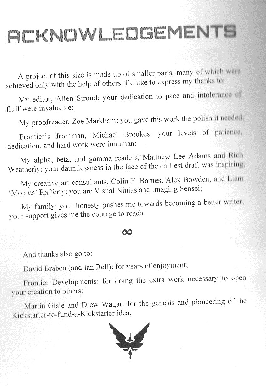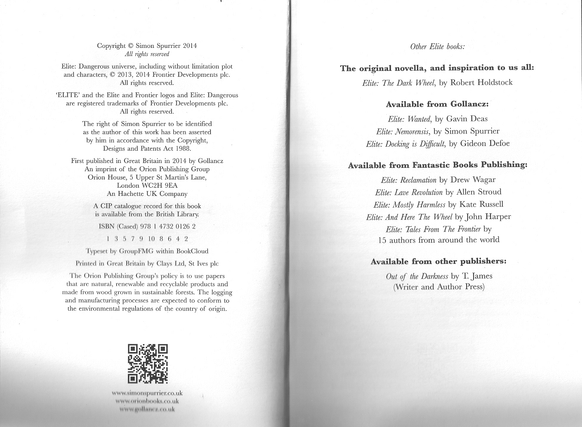 | d4000060.zip | 1362 K |   Credit and Acknowledgment pages of Fantastic Books Publishing novel "Elite: And Here The Wheel" that exploits characters and concepts from Acornsoft Novella "Elite:The Dark Wheel" by Rob Holdstock but nowhere credits acknowledges or mentions Rob Holdstock Ian Bell or Acornsoft | |||||
